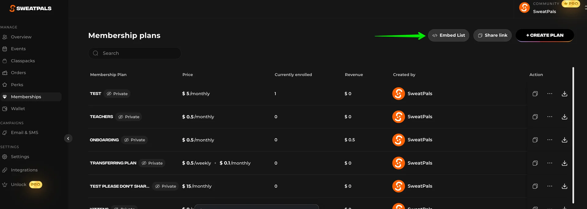 Navigate to your Memberships tab in your SweatPals host dashboard
