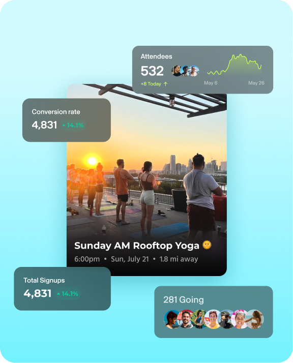 On the attendee side, SweatPals is a social discovery app where fitness enthusiasts find experiences, connect with others, and join like-minded communities.
